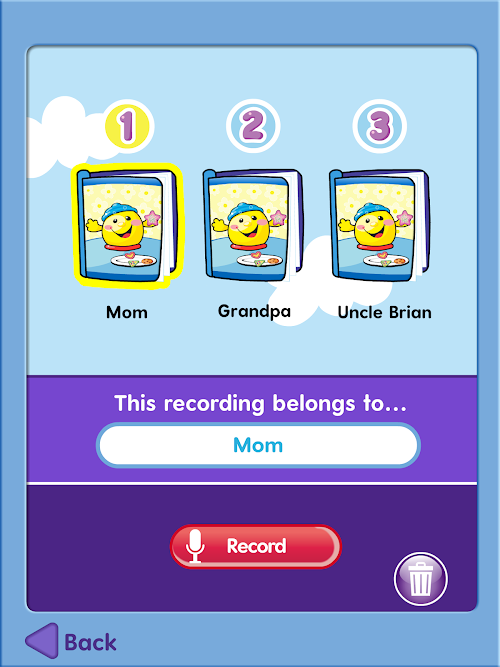 - Record & Play – Record your voice and save up to 3 versions of the story for baby to hear again and again!