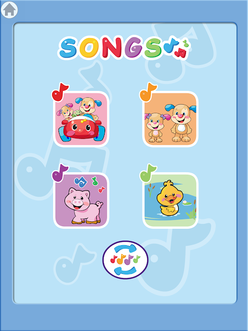 • Song button – Allows easy access to animated songs in a sequential playlist from the main menu. If a song is associated with a page in the story, the song icon will appear on that page for parent and baby to view before returning back to the story