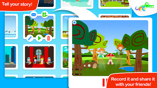 Whether your child favors classic fairy tales set in idyllic, flower-strewn meadows or the gritty edge of a barren dystopian world, StoryBook provides everything kids need for enhanced storytelling.