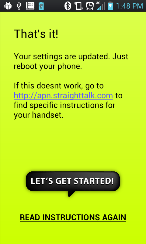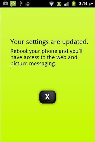 1. If your phone runs Android operating system EARLIER than Ice Cream Sandwich (4.03), your Data and Picture Messaging settings will update automatically.