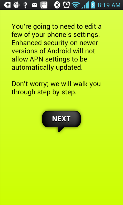 2. If your phone runs an Android operating system Ice Cream Sandwich (4.03) or LATER, this App will provide step-by-step instructions on how to manually update your Data and Picture Messaging settings.