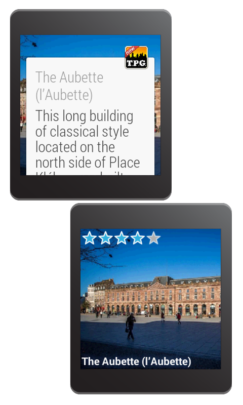You will receive notification on your Android Wear smartwatch (if available) or the guide will start reading information about the sight using Text-to-Speech engine.