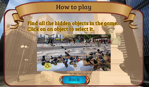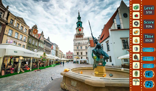 Take a walk on the busy streets and find all the objects hidden throughout the place. Try to find the objects as fast as possible. Use the hint button carefully: it will cost you time and thus bonus points.