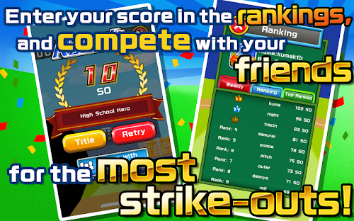 ◆Get the hang of it, and become the King of Strike-outs!Invite your friends and compete with each other!
