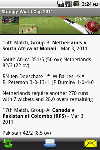 Stumpy - The World Cup 2011 - A Free Android App provides the Live World Cup 2011 Cricket with Statistics.