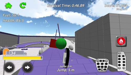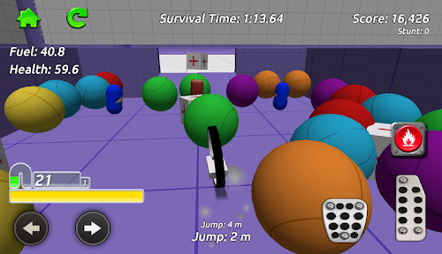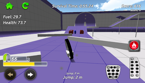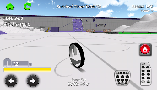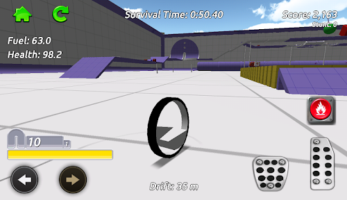 Stunt Mono-bike Simulator is an exciting 3D free-roaming driving game. Go anywhere you want in the sandbox arena whilst collecting fuel and health pickups to keep your mono-bike going, your fuel is always running down so find as much as you can. The pickups are hidden everywhere around the arena, take on the obstacles and challenge games including Football and Bowling as you try to find them all! Earn stunt score as you drive around by performing jumps and drifts, you can also perform flips and spins while your bike is airborne!