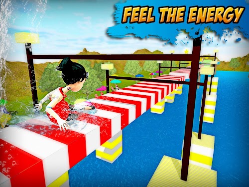 Surviving here is not an easy or simple task, enter into the water park and prepare for the stunning swimming pool, run, race, climb, jump or crawl, swim to dive through various heights, survive as a parkour hero from the legendary spiked shafts and rotating rollers, massive balls of death and pits of sliding tubes, be careful for the twists and turns and wipe-outs, slippery slides, protect yourself from punches, rolling circles go for the water park stunts in this amazing daredevil simulator game where you are the American ninja to clear the dangerous levels to test your stuntman endurance and speed, act and think fast and slither on the ground like a pro ninja warrior or dragon fighter rider compete and crest with your rivals in this extreme elimination run adventure challenges like gladiators on the water ridges, this is a realistic pool runner not like the bike pool stunts.