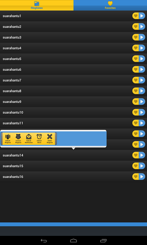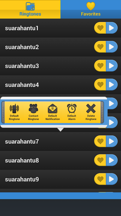 aplikasi ini memiliki pengaturan Contact Ringtone, Default Notification, Default Alarm atau jika tidak suka Anda bisa menghapus salah satunya