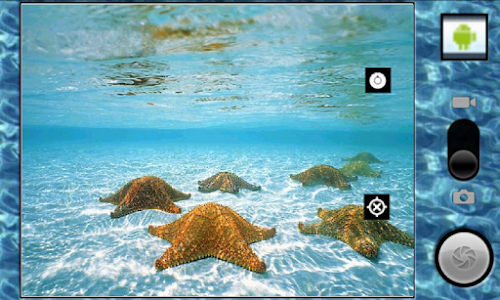 This is conceptually a very simple app, it is the default Camera app provided by Google although usually modified by Samsung or Sony or any other manufacturer, but then it offers the option of taking pictures or start and stopping videos in ways that work underwater: