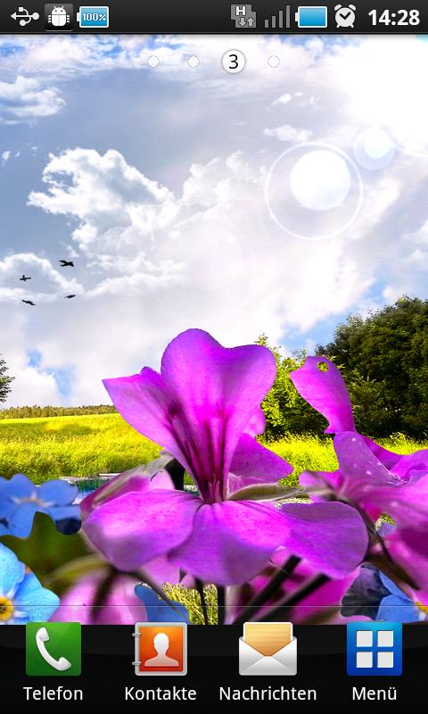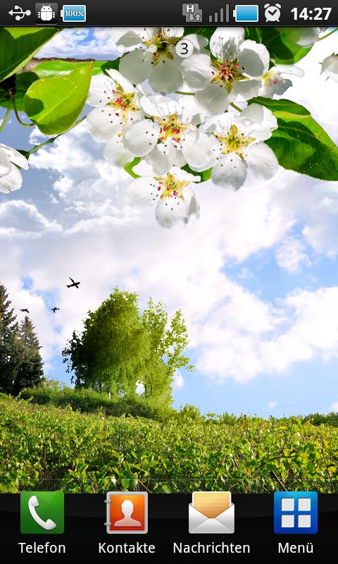 Hello out there it is Summer Time. Get the summer as well on your Smartphone with that sunny live wallpaper. Let the birds circling over the field of sunflowers and put different blossoms in the front or the cherry blossom on top of your screen. The meadow is waiting for the bee and the pool in the green invites you to take a look at the “Summer Time Scene”. This cheerful App comes as well with its own particles. Let seeds appear on the scene by touching your screen and watch them how they soft fly away and disappear.