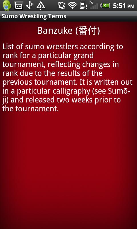 If you are looking to download other versions of Sumo Wrestling Terms Android App, We have 1 version in our database. Please select one of them below to download.