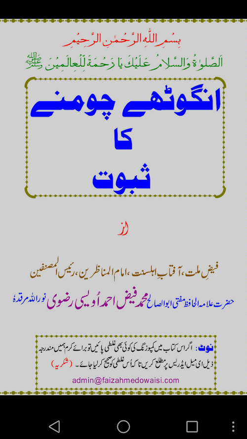 Angootha Choomne ka Saboot is one of the finest books of Hazoor Mufasire-e-Azam Pakistan Allama Mufti Faiz Ahmed Owaisi Alaihir Rehma.