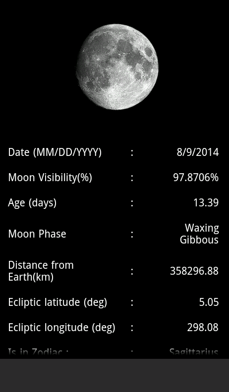 1. Moon Visibility (Illumination) : What % of moon is visible to us.