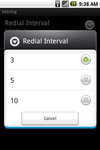 3) Redial interval: redial interval can be set into 3 seconds / 5 seconds / 10 seconds in the menu. The default interval is 3 seconds.