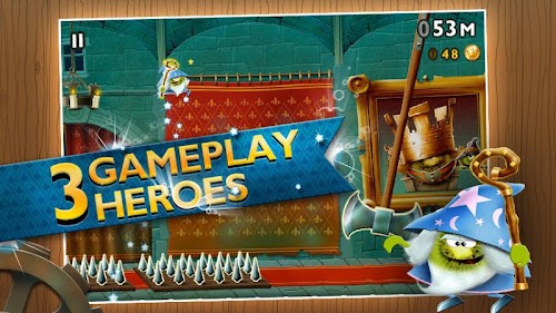 Throughout your adventure, unlock heroes each with their own special ability and choose your favorite to play with. The Knight has the power to jump, while the Wizard flies and the Archer glides through the air. Explore all the corners of the castle, from the drawbridge to the castle tower, passing through the dungeons. Take a trip to the Shoppe to procure potions and boosts, or restyle your hero with a change of costume.
