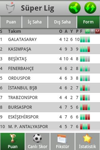 Spor Toto Super Lig ' de puan durumunu canlı maç sonuçlarını ve haftanın programını takip edebilirsiniz. İnternet bağlantısının olmadığı durumlarda son bağlandığınızda güncellenen bilgileri gösterir.
