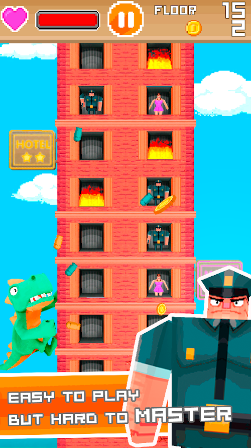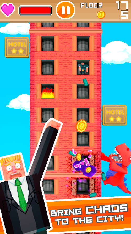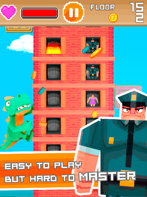 Super Monster Mayhem captures the oldschool arcade gameplay and brings it to your phone. Climb an endless building eating innocent civilians while avoiding bullets, angry cops, fire, explosions and other hazards in this easy to play but hard to master game. Master your rampaging skills, beat your score and reach the top of the leaderboards.