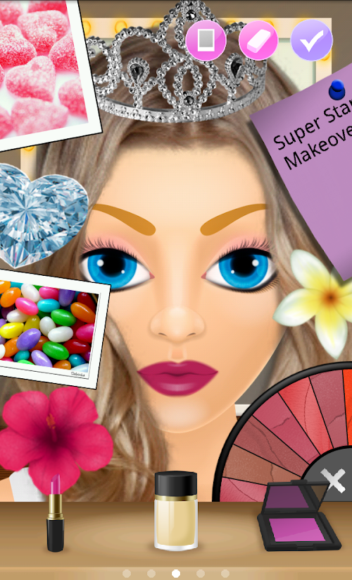 Be your very own beauty specialist and get your Super Star ready for the red carpet using countless cosmetic products, hairstyles, accessories and jewels! You can try on makeup on a model or even on your very own picture! You can also decorate your Super Star makeover with crayons, pictures, sticky notes, and much more!! Once you are done creating your makeover, share your Super Star looks with friends or save them to your gallery!