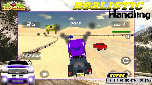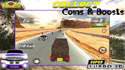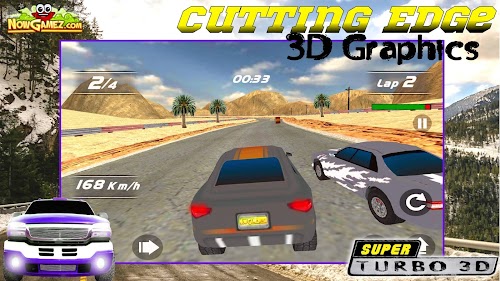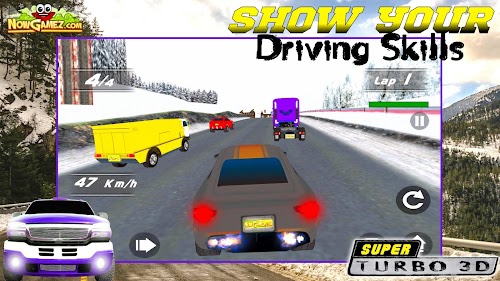 Super Turbo 3d is a exhilarating 3D game which will be loved by many race fanatics. Show your driving skills and feel the intensity. You will enjoy this game as much as we do. Super Turbo 3D is all about high speed and twisty corners. Just accelerate and hold your steering wheel. With the competitive opponents at your side you will not loose any attention. 3-2-1 and go! Try to overtake all the others at the first corner. Do not brake or hold your throttle...