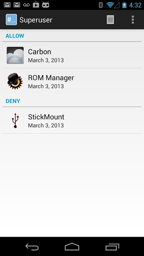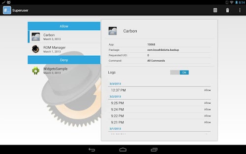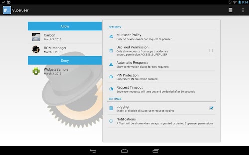 * Superuser should also be AOSP embeddable, meaning a ROM can easily embed it into their Settings app.