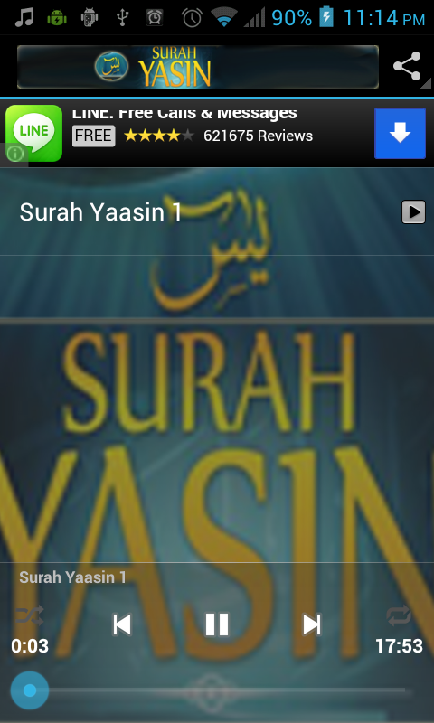 * Can hear and read Surah Yasin while off line. (Should not the internet connection)