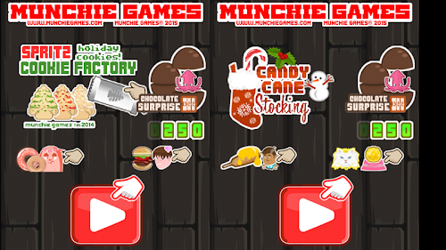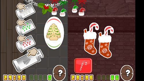 Surprise Egg Christmas arcade is simple Christmas fun! Two possible games you play to try to win the virtual Surprise Chocolate Egg Achievements! 5 secret possible virtual prizes cycle in the chocolate eggs and some are rare! Game 1 is Christmas Spritz Cookie Factory! Try to squirt the cookie dough and then sprinkle with the right sprinkles, to match the cookie on the plate. Sound Simple..it's hard because every wrong cookie takes away 15 points! You need 250 points to crack the egg! Game 2, Candy Cane Stocking! Try to shoot the candy canes into the Christmas stocking at the right time! Every miss you loose 15 points Try playing both games at once!
