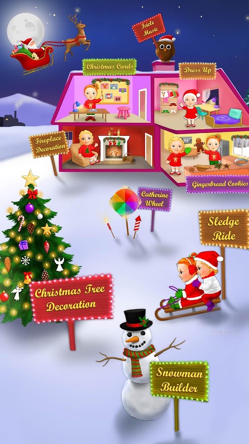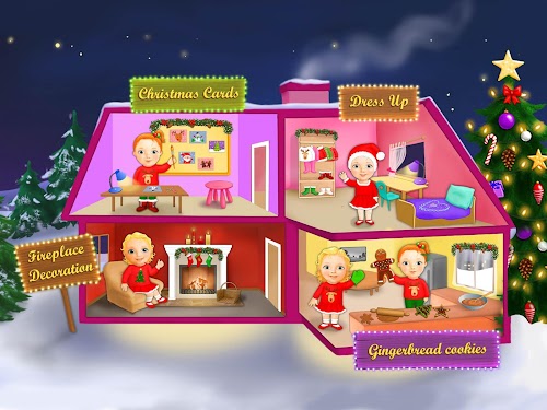 Who are these adorable Santa's helpers? It's the Sweet Baby Girl and friends getting ready for Christmas! Join them and have tons of fun in Santa's village. Decorate fireplace, draw Christmas cards, bake ginger cookies, play icicle piano and more!