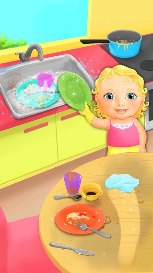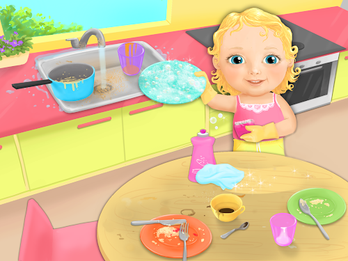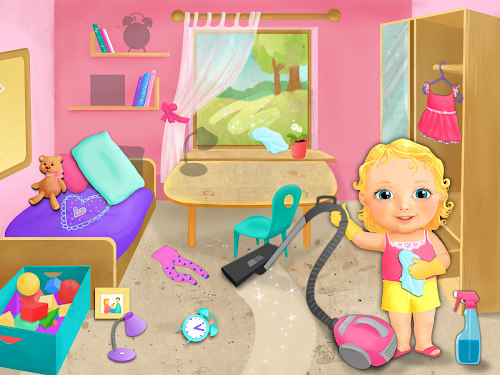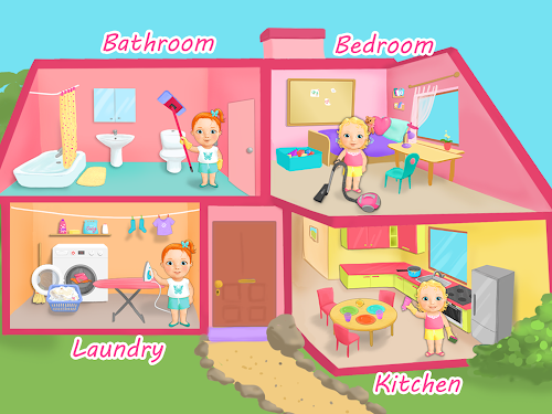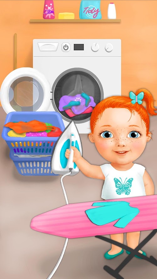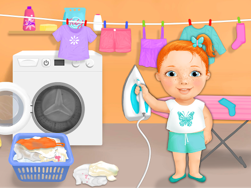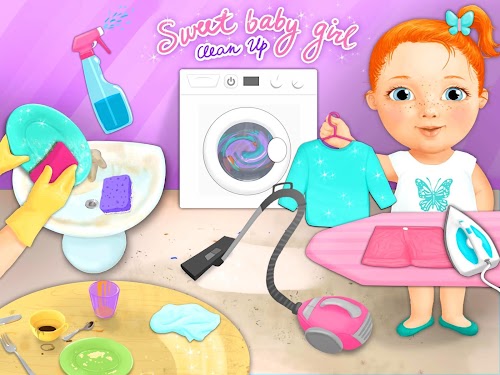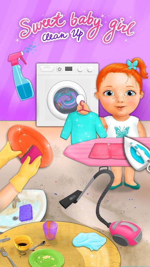 It’s Sweet Baby Girl clean up time! Rush into 4 messy rooms with your favorite girls – Alice and Emma. Wash dishes, do laundry, iron clothes, mop the floor and do other cool house chores to make the Kitchen, Bathroom, Bedroom and Laundry Room look nice and pretty again!