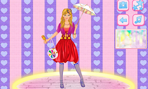 For all the ones who adore princesses we bring you the candy princess! She lives in this colorful and magic candy world where everything around you is made of sweets and looks just amazing! Play this fun princess dress up game and choose a colorful outfit to wear today. This fun girl game will make you spend a magic day in candy world!