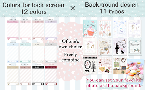 Customize the lock screen (=the startup screen of the smartphone) in a cute way ♪ A set with 12 sweet colors and 11 types of background designs!