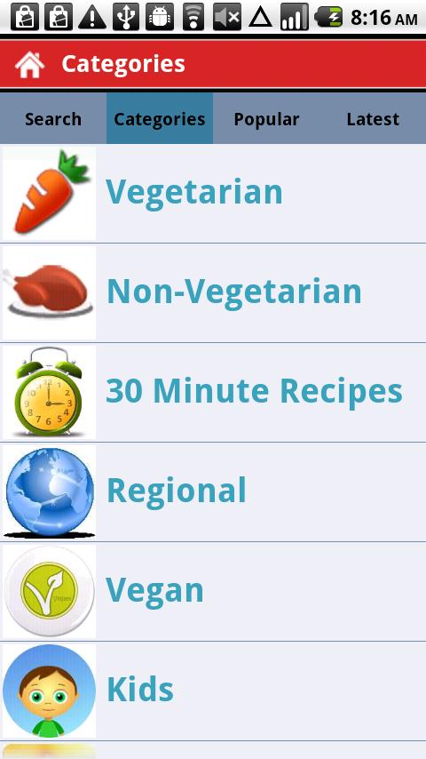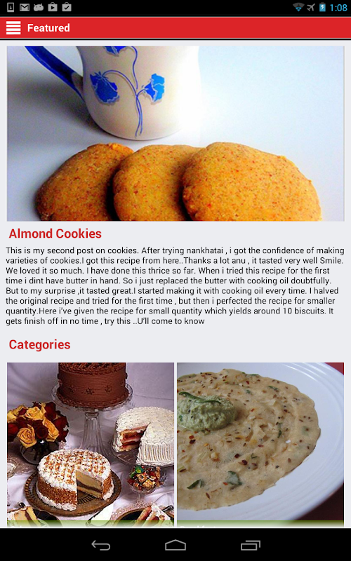 1. You can browse through all the Categories, Sub Categories and find recipes in each of them.