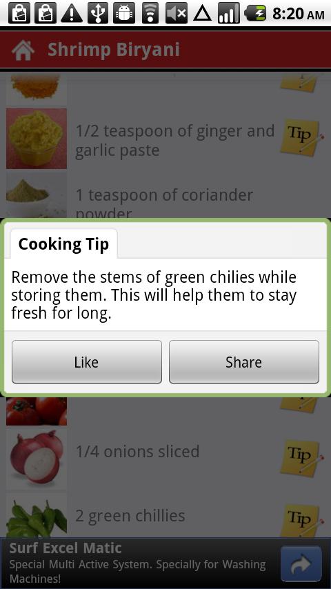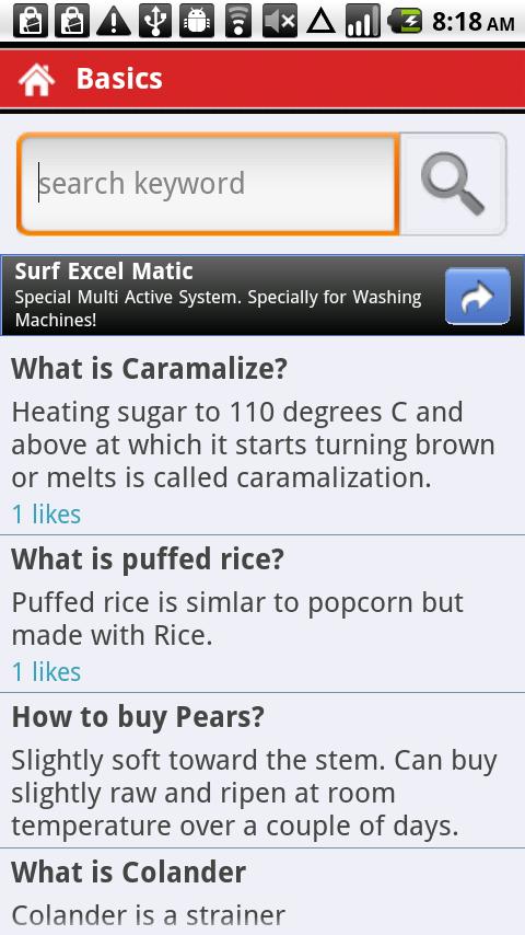 All the information has been organized and cataloged so that we can relate the recipes by Categories, Foods, and Ingredients. The App also feature the first Calorie calculation engine for Indian recipes.