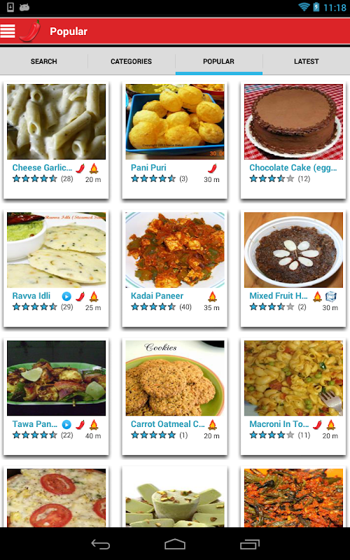 6. Search Recipes by Food Name, Category, Cooking Time etc. You can even search just video recipes.
