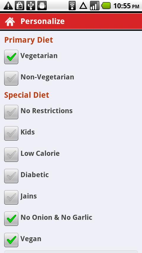 5. Personalize the entire app to match your Diet constraints, eg Vegetarian, Healthy, No Oil or Diabetic recipes