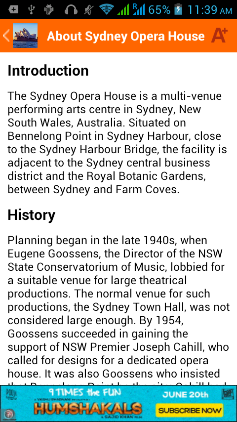 Monuments are the pride of the country they belong to. This Sydney Opera House app will provide you all the details about the famous monument. The Sydney Opera House is situated in Sydney, New South Wales, Australia and is Identified as one of the 20th century's most distinctive buildings and one of the most famous performing arts centres in the world. As one of the most popular visitor attractions in Australia, more than seven million people visit the site each year, with 300,000 people participating annually in a guided tour of the facility.