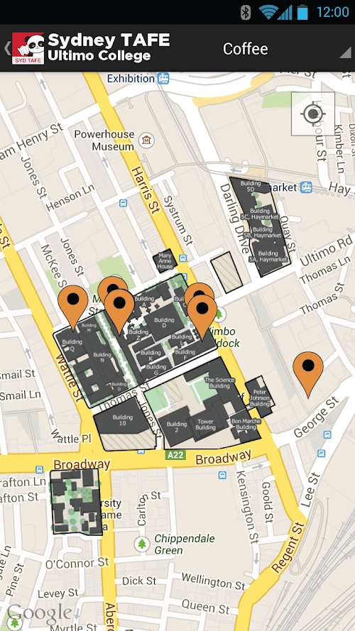 Sydney TAFE students were involved in building this app. Sadly, all have now been diagnosed with Campuscartophilia. Yes – they all love campus maps!