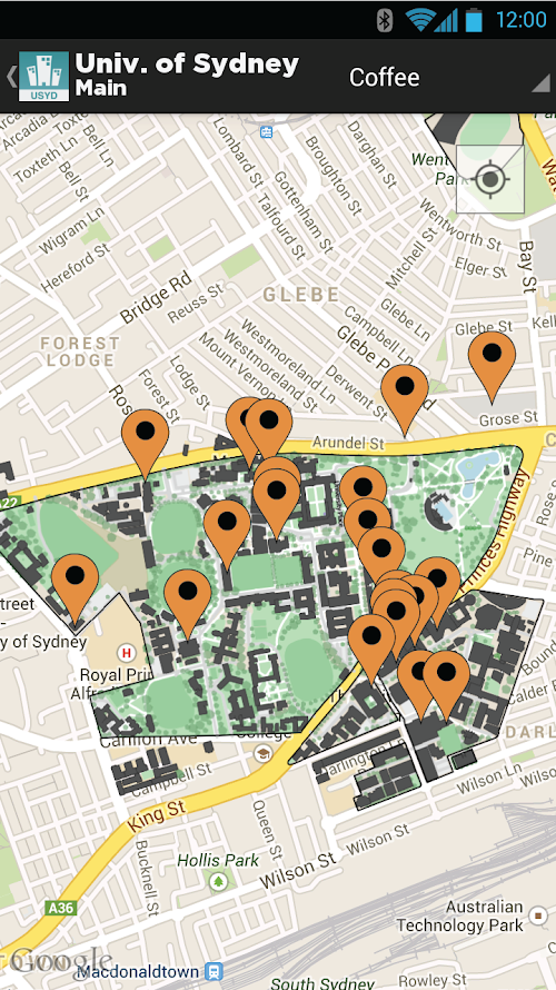 Makes uni easy. Find every tutorial room, lecture theatre, computer lab, coffee shop, carpark, bus stop, sports field, your nearest toilet, vending machine -even campus "secret locations".