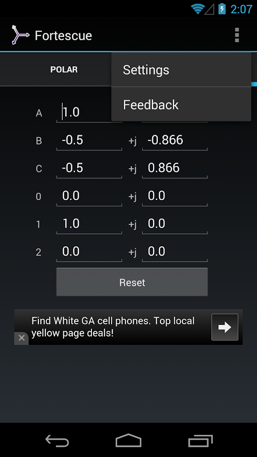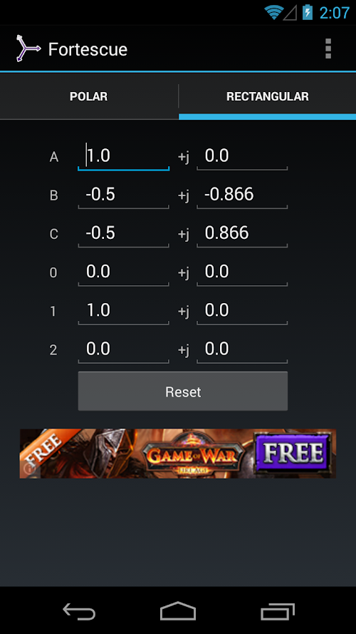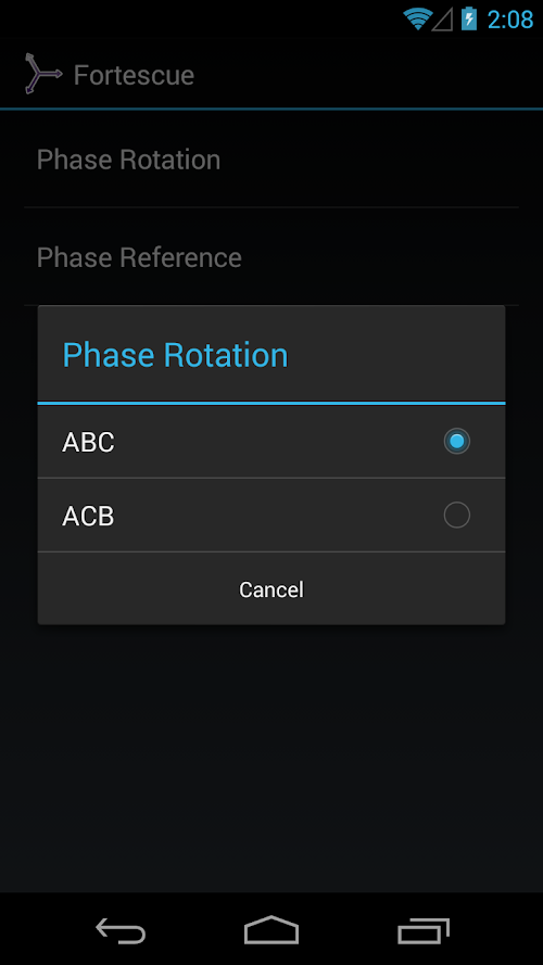 Fortescue is a symmetrical components calculator for Android 4.0 and above.