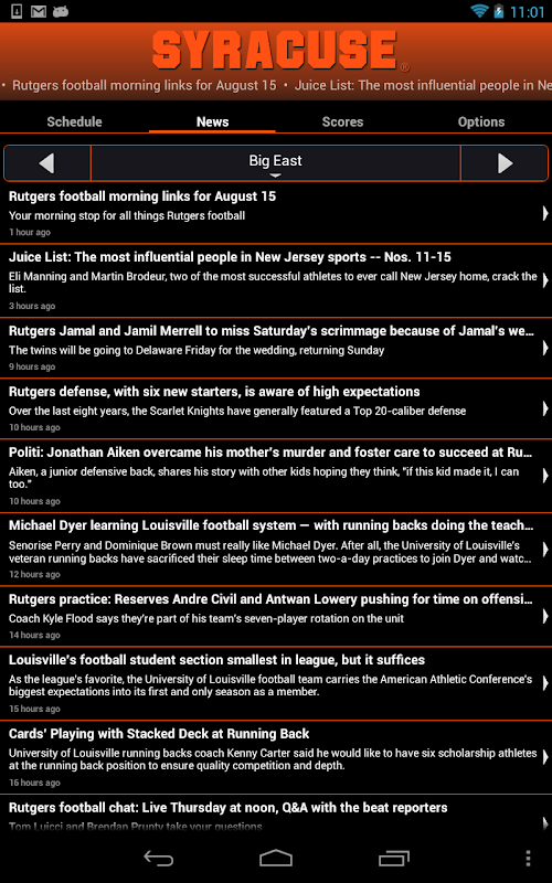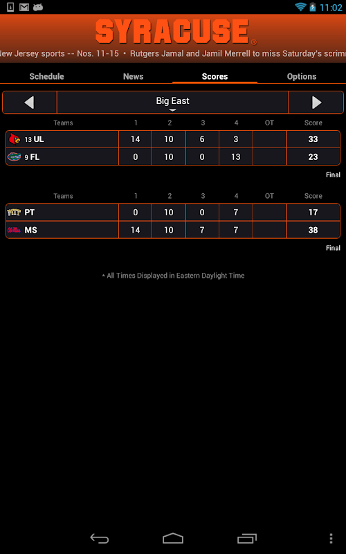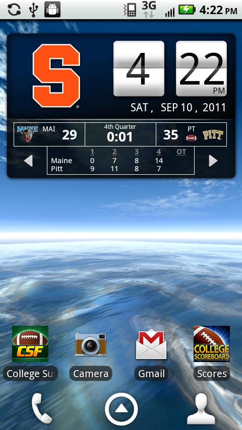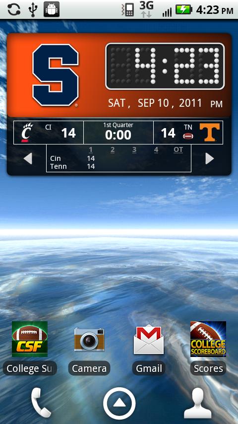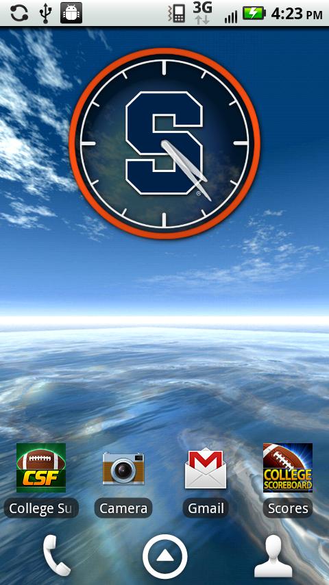 **7 Day Free Trial!** Official Syracuse Orange Live Clock, with college football and basketball scores below the clock when games are in progress. This widget lets you replace the standard clock in your phone with a custom Syracuse clock, with instant access to scores, schedules and news (as well as other conferences). You don’t even need to open the app to see live scores—they appear automatically during live games. When no games are on, you’ll see the latest news headlines below the clock.