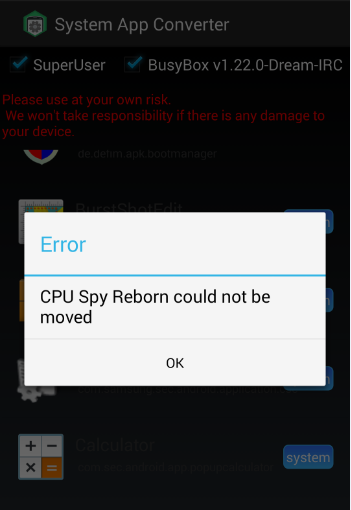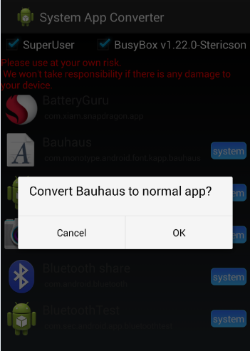 WARNING: Converting some important System apps to User apps might make the device unusable!