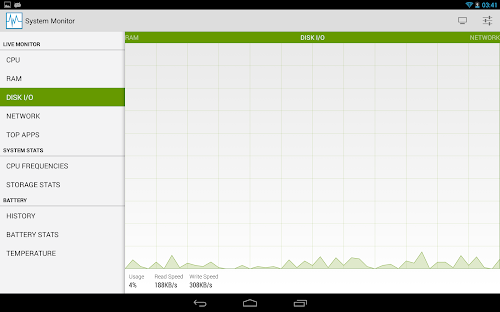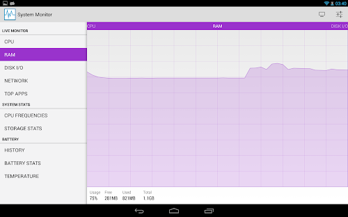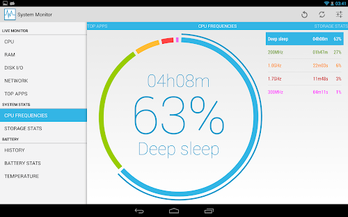 The most beautiful and versatile System Monitor for Android! This application provides real time system load statistics and important information in the form of text and fancy graphs.