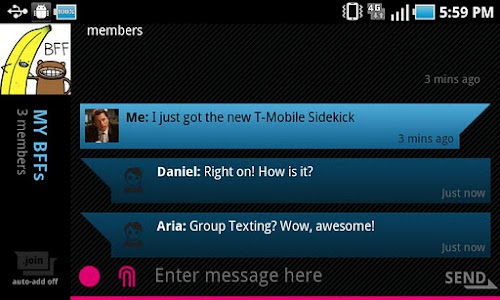For the Samsung Sidekick 4G. Get the word out and keep your circle tight with Group Text™ and Web Texting by T-Mobile. Create groups and easily text with your friends and family. When you send a text, everyone instantly receives it and can reply to all. You can also text from your PC, Laptop, or Tablet - taking advantage of a large screen and full keyboard. This application is built especially for the Samsung Sidekick 4G.