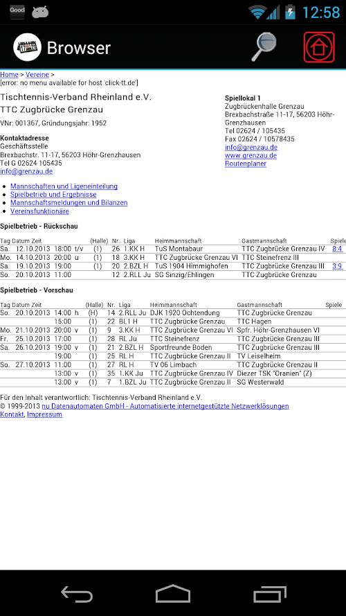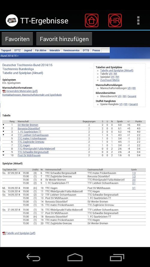 the German table tennis leagues. It is user-friendly and provides a