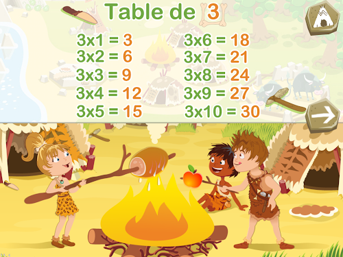 Choisissez une table de 1 à 10… une nouvelle aventure commence ! L’enfant travaillera les multiplications dans plusieurs types de jeux :