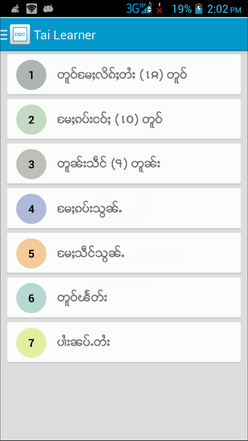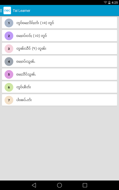 Tai Learner App is created by Researchers and Developers of SIIT under Shan Computer Federation. This app mainly aims to assist those who are learning Basic Shan Language spoken by Shan not only in Myanmar but also around the world. Basic sounds and pronunciations of Shan Language are covered in this app. However, those who are not familiar with Shan Language will not be able to make self study and need someone to guide you. More exercises will be added in updated version. You also can be part of this project by donating us.