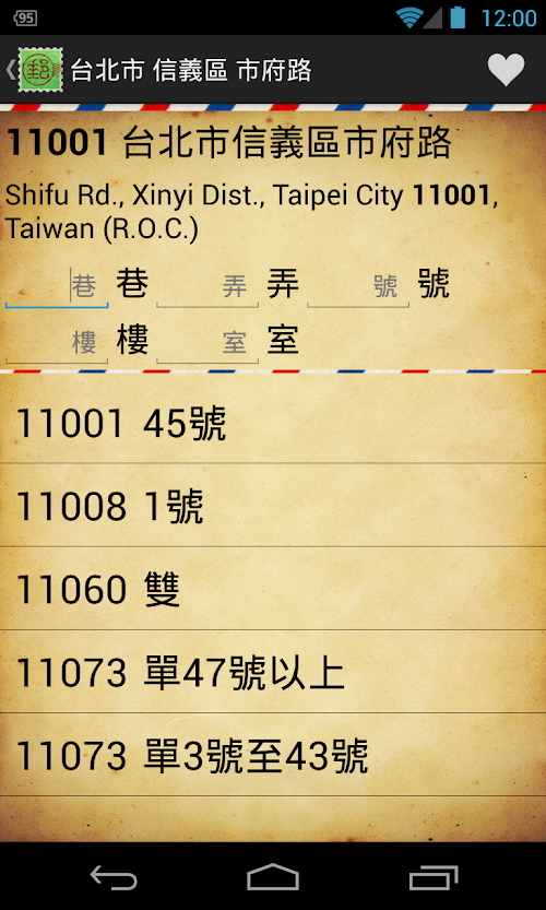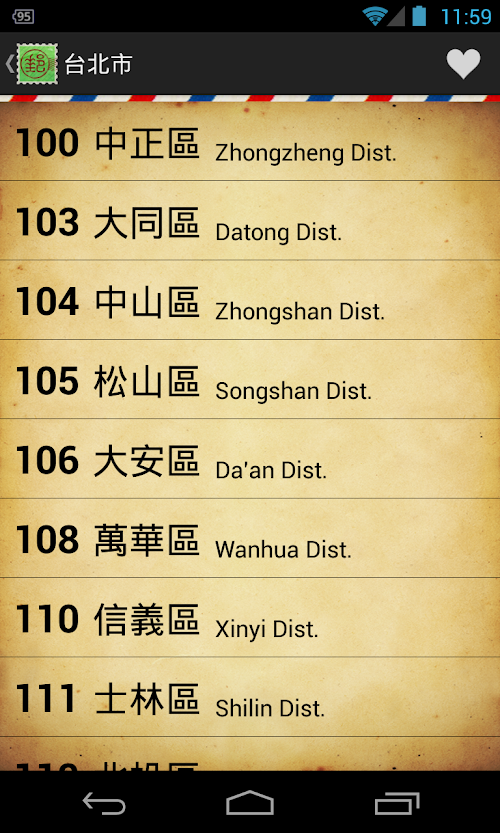 If you are looking to download other versions of Taiwan Zip Code Android App, We have 1 version in our database. Please select one of them below to download.