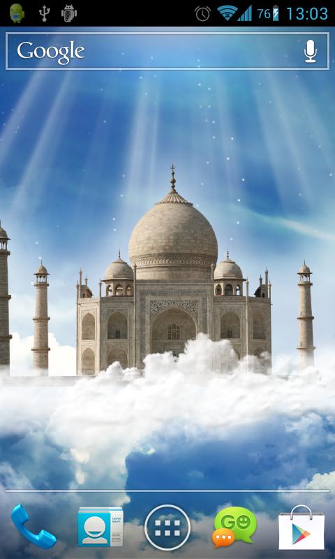 Feel the magic of the jewel of Islamic art! With Taj Mahal Live Wallpaper you can enjoy the view of one of the universally admired masterpieces of the world's heritage.