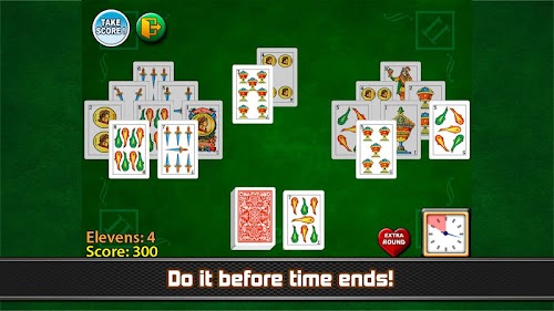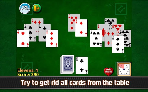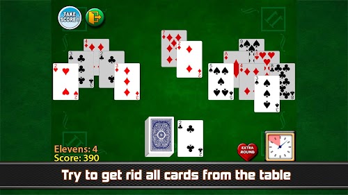 Challenge your mind, fighting against the clock to get eliminate all cards from the table in this solitaire game. Select the cards until you get to add up to 11 points and then they disappear. Could you get it?
