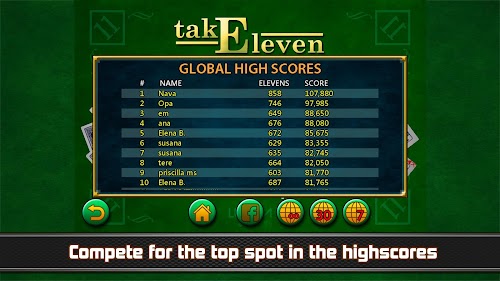 Try to get the top spot in the global high score table. You can also connect with Facebook, and compete against your friends.