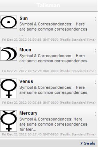 Enter into the mysteries of Talismanic Planetary Magic and gain insight into the unknown, they say knowledge is the key and that just may be. Attain what your heart desires, with this app users and adepts are know armed with the power of the planets of Mars, Saturn, Venus, Mercury, the Moon and the Sun, in your pocket and at the palm of your hand, "Talisman Magic: The 7 Seals" gives you all of the planet correspondences, magic number squares, the characters of the intelligences, angels, demons and spirits of each celestial body, symbols and much more. Achieve all of your desires of success, wealth, love, health, beauty, dating, attraction, abundance, friends, work and more. This hidden knowledge has been used by the ancients and the sages such as Moses, King Solomon, King David, Enoch, Cornelius Agrippa, Giordano Bruno and other Magicians. The art of talismans dates back to the times of Ancient Egypt, the days of King Solomon and more recently reintroduced by Orders such as that of the Golden Dawn and popularized by the books such as the Goetia (The Lesser Keys of Solomon), The Greater Keys of Solomon and other Grimoires/Magical Texts.